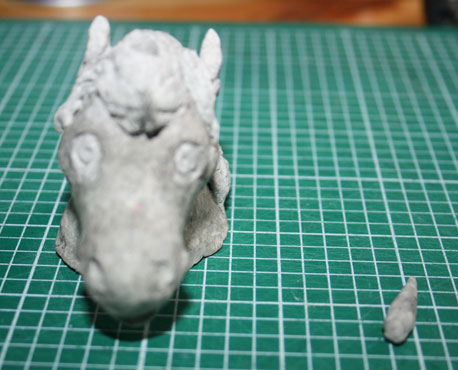 Aus meinen aktiven Tabletop-Zeiten hatte ich noch mehr als genug Greenstuff (eine Modelliermasse, die aus zwei Komponenten [blau und gelb] besteht, die vor dem Gebrauch miteinander verknetet werden und dann eine grüne Masse ergeben, daher der Name) übrig. Wer sich auch einmal am Modellieren versuchen möchte, dem möchte ich zwei Ratschläge ans Herz legen.